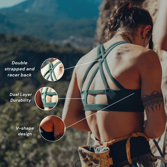 Our bras have been designed with serious climbers in mind, and to meet the unique needs of the female climber's physique - which is most typically a wide back and small to medium sized breasts.